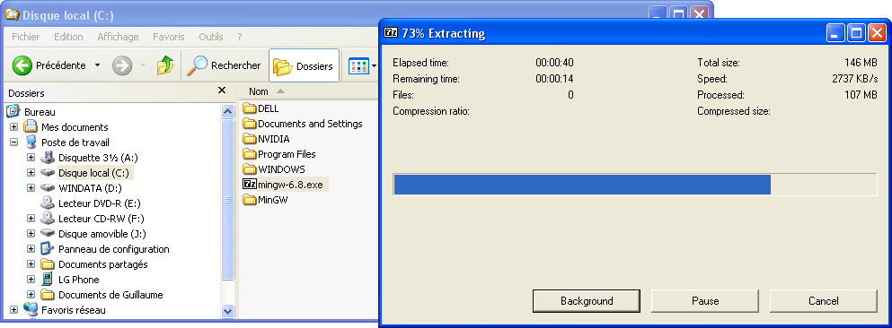 2) Choisir impérativement C:\ comme chemin d'installation dans la boîte de dialogue qui s'est ouverte, puis cliquer sur le bouton Extract