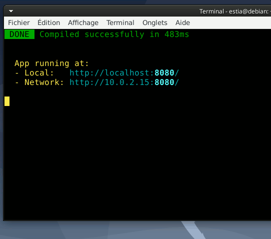 Maintenant, observons l'exécution de ce nouveau projet Vue.js