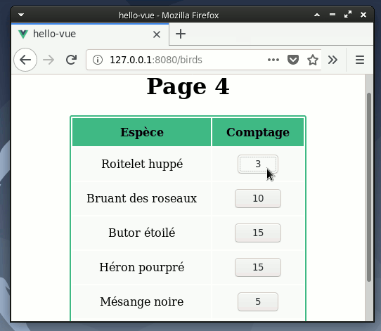 <tr v-bind:key="specie.id" ><td>{{ specie.nom }}</td><td><ButtonCounter :start="specie.nbr" /></td></tr></template>