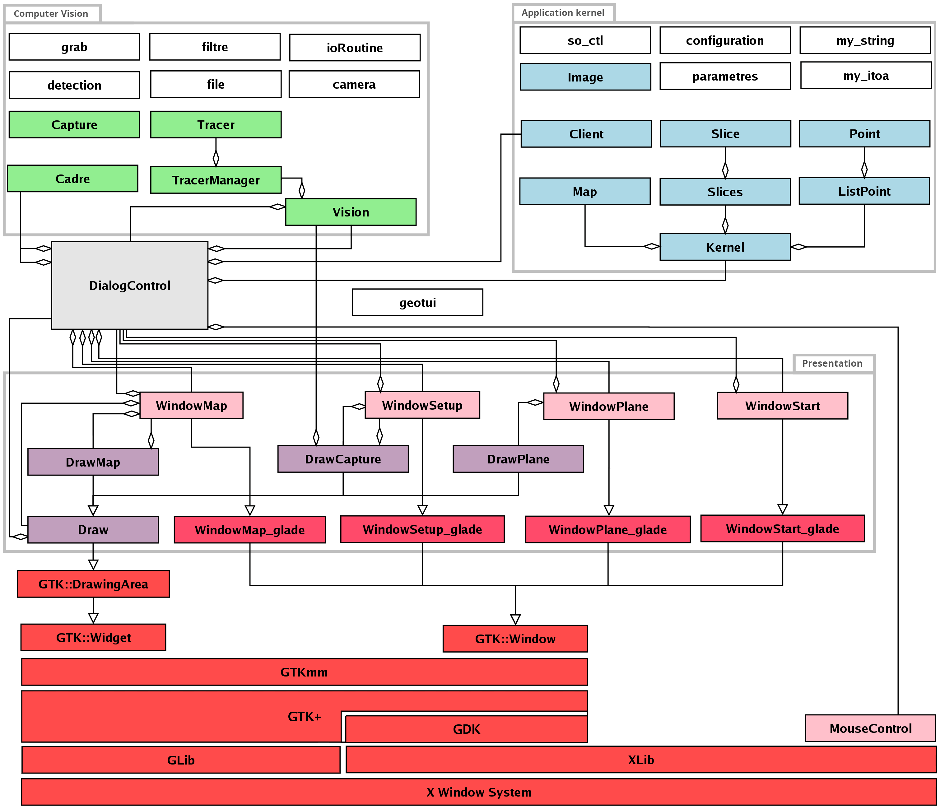 The class diagram of the C++ classes (generated by reverse engineering using cpp2dia) is the following: